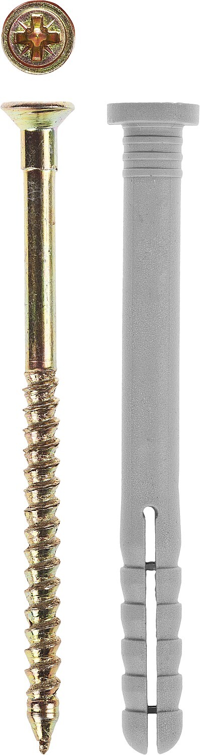 Дюбель-гвозди изготовлены из высококачественных материалов и используются для быстрого сквозного монтажа различных элементов и конструкций к несущему основанию. Находят широкое применение в быту для крепления полок, шкафов, картин, светильников, сантехники и т.п. Дюбель вставляется в предварительно просверленное сквозное отверстие, гвоздь забивается при помощи молотка.ПреимуществаЦилиндрический бортик защищает фиксируемую конструкцию от повреждения при забивания гвоздя, а также предотвращает проваливание дюбеля в отверстиеШлиц PZ и кольцевая накатка на гвозде позволяют произвести демонтаж соединения при помощи отверткиПолипропилен устойчив к воздействию влаги. Цинковое покрытие гвоздя надежно защищает от коррозии. Благодаря этому дюбель-гвозди могут использоваться при выполнении наружных работИспользованиеДля быстрого сквозного монтажа различных конструкций к полнотелым основаниям (бетон, кирпич, природный камень). Установка производится в предварительно просверленное и очищенное от буровой муки отверстие диаметром 8мм.]]>