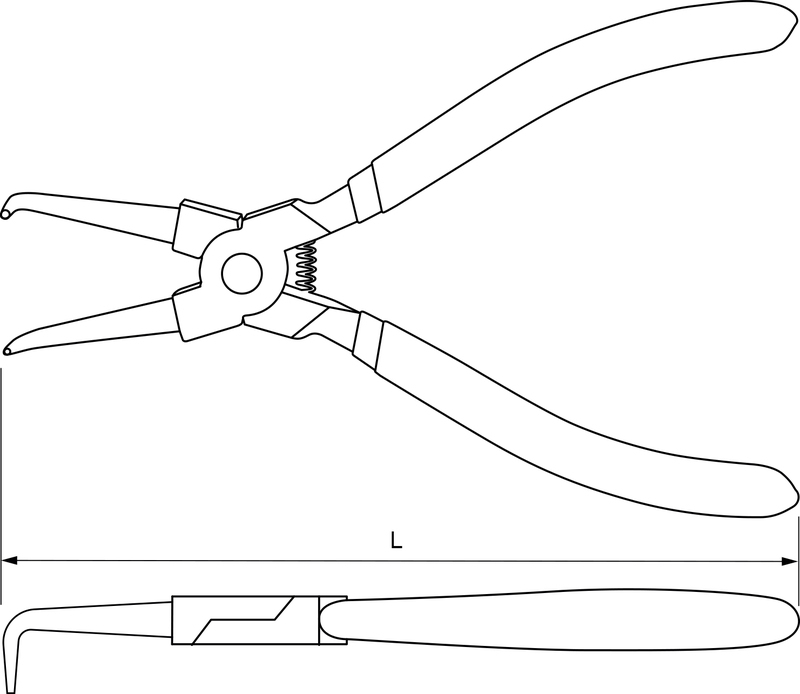 IRBP180 Щипцы загнутые 90° для стопорных колец с ПВХ рукоятками, сжим, 180 мм, 12-65 мм