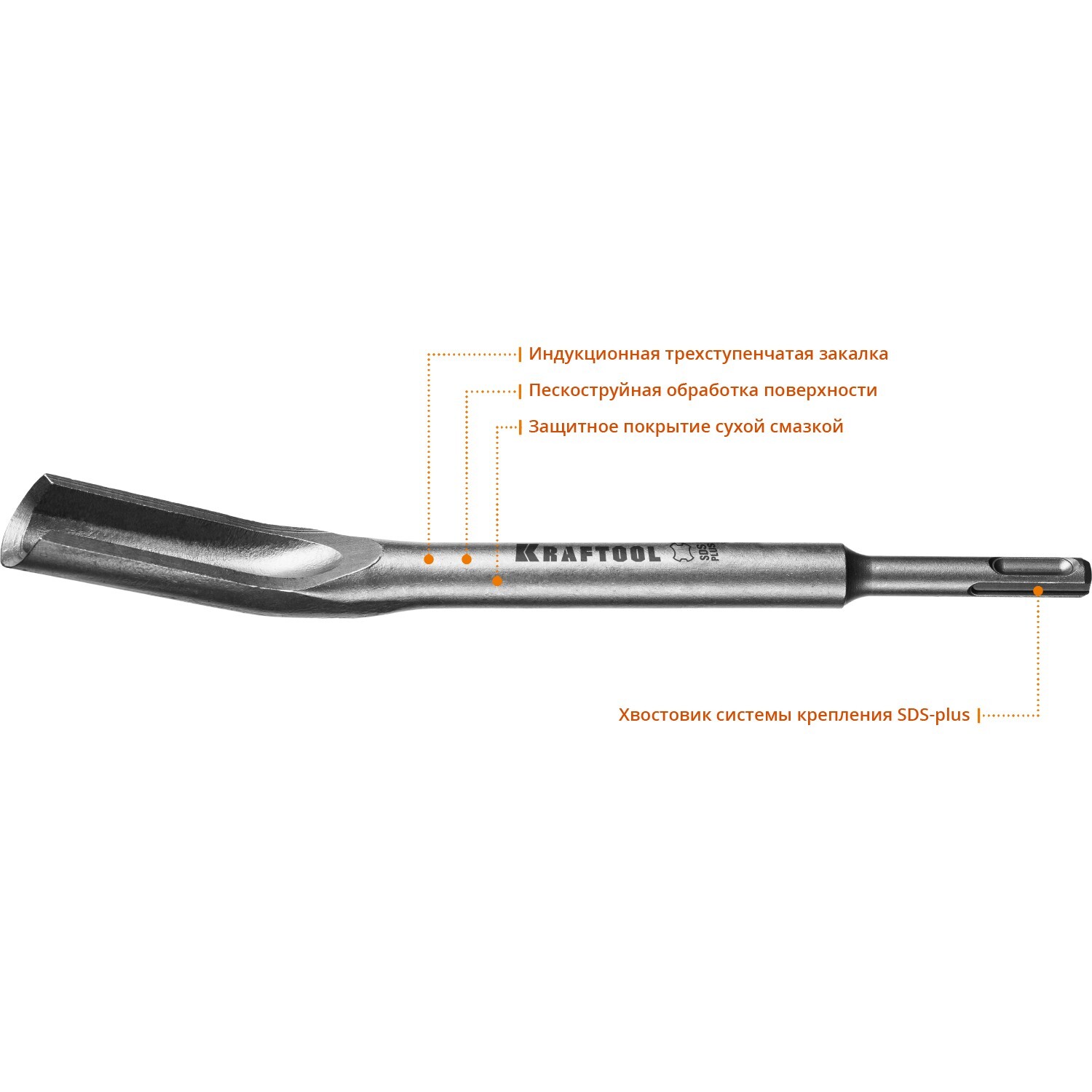 Ударный инструмент Kraftool - инструмент профессионалов для общих долбежных и демонтажных работ с материалами высокой твердости, такими как кирпичная кладка, бетон или камень.ПреимуществаИндукционная трехступенчатая закалка со строгим соблюдением температур в каждой зоне при термообработке для повышения стойкости и увеличения рабочего ресурса инструментаВысоколегированная хромомолибденовая сталь гарантирует продолжительный срок службы инструментаВысокая прочность к ударам и динамическим нагрузкамШлифованная цилиндрическая форма корпусаИспользованиеДля штробления каналов в бетоне и кирпичной кладке, прокладки труб и кабеля. Используется с перфораторами SDS-plus.]]>