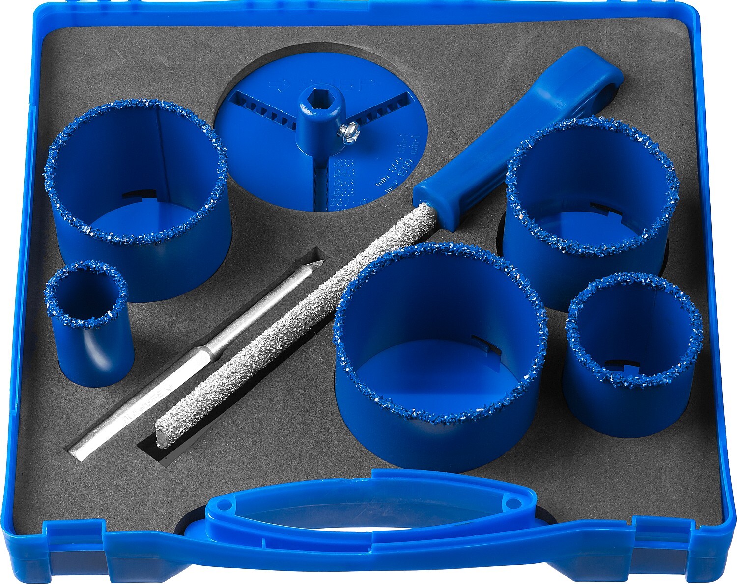 Кольцевые коронки с нанесением карбида вольфрама имеют высокую производительность и продолжительный срок службы. Корпус коронки имеет идеальную круглую форму, карбид-вольфрамовая крошка надежно припаяна по окружности к рабочей кромке на соверменной автоматической линии.ПреимуществаРавномерное нанесение карбид-вольфрамовой крошки обеспечивает аккуратное сверление материала без трещин и сколов.Новейшая технология автоматического нанесения и высокотемпературной спайки твердосплавной крошки к корпусу значительно повышает ресурс инструмента.Сверхпрочная связка твердосплавной крошки благодаря термической обработке в вакууме.Глубина сверления 55 мм.Износостойкое покрытие защищает от коррозииИспользованиеНабор применяется для получения ровных отверстий в облицовочных материалах, а также в ячеистом бетоне, кирпиче и гипсокартоне. Используется на дрелях и легких перфораторах в режиме безударного сверления.]]>