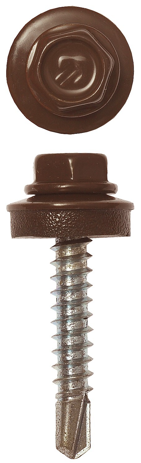 Кровельные саморезы изготовлены из стального прутка с высоким содержанием углерода. Контроль за геометрией самореза начинается с калибровки прутка и заканчивается тщательной проверкой размеров готового изделия. Нормативная твердость стали достигается термической обработкой. Поверхностная твердость мин. 560HV, твердость в сердцевине 240-425HV. Шайба с прокладкой EPDM плотно прижимается к кровельному материалу, герметизируя просверленное отверстие. Шестигранная головка выдерживает большой крутящий момент и значительно облегчает вкручивание самореза. Геометрические размеры: диаметр шайбы (Dw) - 13.90-14.15мм, толщина прокладки (Ar) - 2мм, Размер под ключ (S) - 7.8-7.9мм, диаметр резьбы (D) - 4.75-4.95мм, диаметр сверла (dp) - 2.8-2.9мм, длина сверла (ds) - 4.0-4.8мм, шаг резьбы (Pi) - 2.12мм.ПреимуществаПрокладка EPDM сохраняет свои свойства при частых изменениях нагрузок, температуры и воздействии УФ излученияОкраска головки с шайбой выполнена методом порошкового напыления. Cтандарт RAL поможет безошибочно подобрать саморезы под цвет кровельных материалов.Улучшенная геометрия сверла обеспечивает быстроту и легкость сверления в черепице и листовых кровельных материалахЦинковое покрытие надежно защищает от коррозииИспользованиеДля крепления кровельных материалов к деревянной обрешетке (металлическим конструкциям)]]>