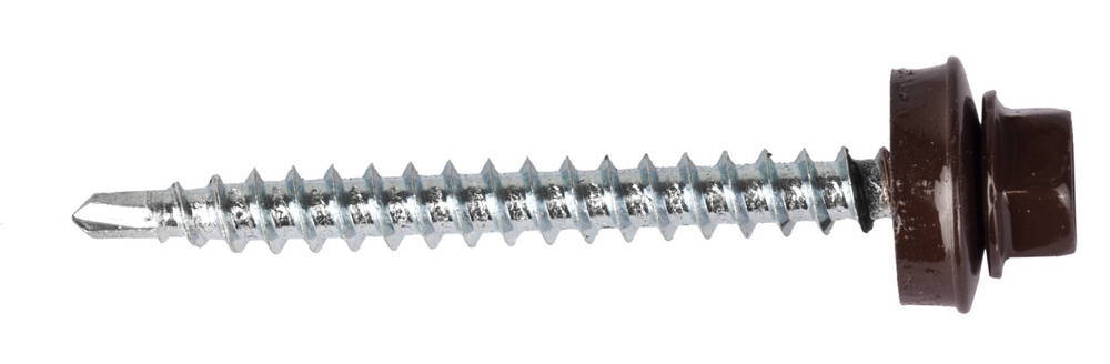 Кровельные саморезы изготовлены из стального прутка с высоким содержанием углерода. Контроль за геометрией самореза начинается с калибровки прутка и заканчивается тщательной проверкой размеров готового изделия. Нормативная твердость стали достигается термической обработкой. Поверхностная твердость мин. 560HV, твердость в сердцевине 240-425HV. Шайба с прокладкой EPDM плотно прижимается к кровельному материалу, герметизируя просверленное отверстие. Шестигранная головка выдерживает большой крутящий момент и значительно облегчает вкручивание самореза. Геометрические размеры: диаметр шайбы (Dw) - 13.90-14.15мм, толщина прокладки (Ar) - 2мм, Размер под ключ (S) - 7.8-7.9мм, диаметр резьбы (D) - 4.75-4.95мм, диаметр сверла (dp) - 2.8-2.9мм, длина сверла (ds) - 4.0-4.8мм, шаг резьбы (Pi) - 2.12мм.ПреимуществаПрокладка EPDM сохраняет свои свойства при частых изменениях нагрузок, температуры и воздействии УФ излученияОкраска головки с шайбой выполнена методом порошкового напыления. Cтандарт RAL поможет безошибочно подобрать саморезы под цвет кровельных материалов.Улучшенная геометрия сверла обеспечивает быстроту и легкость сверления в черепице и листовых кровельных материалахЦинковое покрытие надежно защищает от коррозииИспользованиеДля крепления кровельных материалов к деревянной обрешетке (металлическим конструкциям)]]>