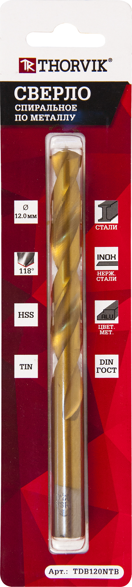 TDB120NTB Сверло спиральное по металлу HSS TiN в блистере, d12.0 мм