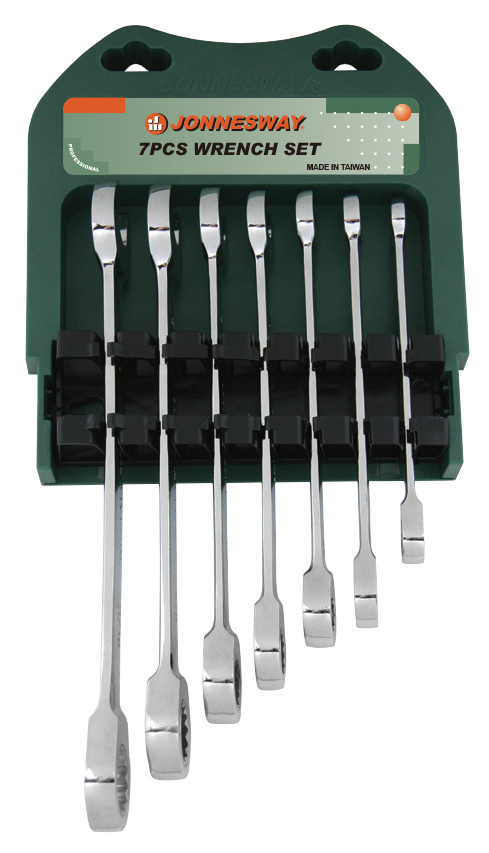 W45107S Набор ключей гаечных комбинированных трещоточных на держателе, 10-19 мм, 7 предметов
