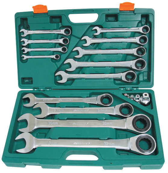 W45117S Набор ключей гаечных комбинированных трещоточных с аксессуарами в кейсе, 8-32 мм, 17 предметов