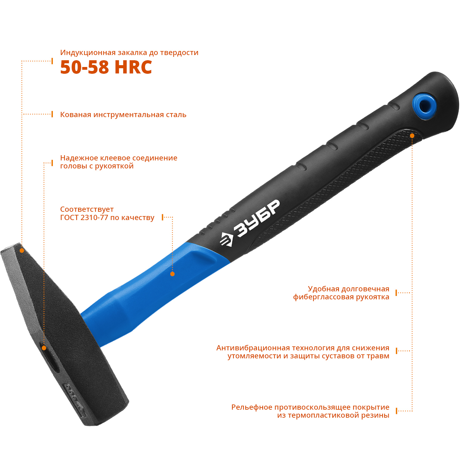 Молоток ЗУБР ПРОФЕССИОНАЛ оснащен особопрочной фибергласовой рукояткой. АВТ - технология позволяет существенно снизить вибрации, возникающие во время удара, что делает работу с инструментом более комфортной. Соответствует требованиям ГОСТ 2310-77.ПреимуществаОсобопрочное крепление головыАнтивибрационная технолгия (АВТ)Кованая головаРельефное противоскользящее покрытие рукояткиФиберглассовая рукояткаИспользованиеДля слесарно-монтажных работ]]>
